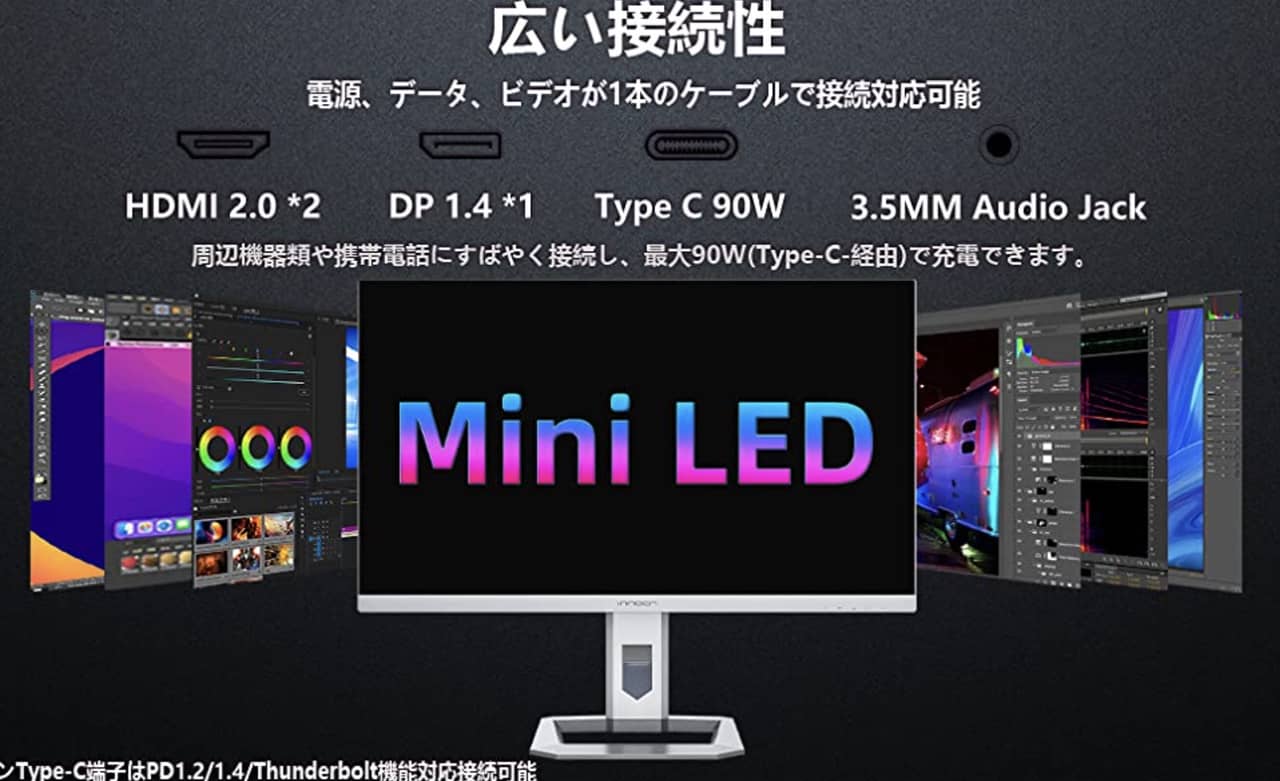こんな感じで仕様を見るとInnocn 27 M2UはMiniLED搭載ディスプレイとしてはエントリークラスではあるんですが、これまでの液晶ディスプレイが画面全体をバックライトで照らしていたことを考えると、お手頃価格でありながら従来の液晶ディスプレイよりも圧倒的に表現力が高いMiniLED搭載というだけで大きな魅力かと思います!