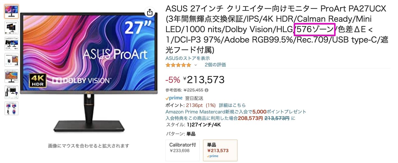 ▼例えば先程紹介したProArt PA27UCXだと576ゾーン。↓