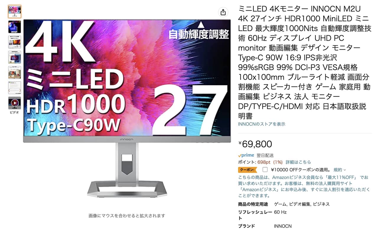MiniLED搭載の27型4Kディスプレイ「Innocn 27 M2U」が破格過ぎてヤバい!