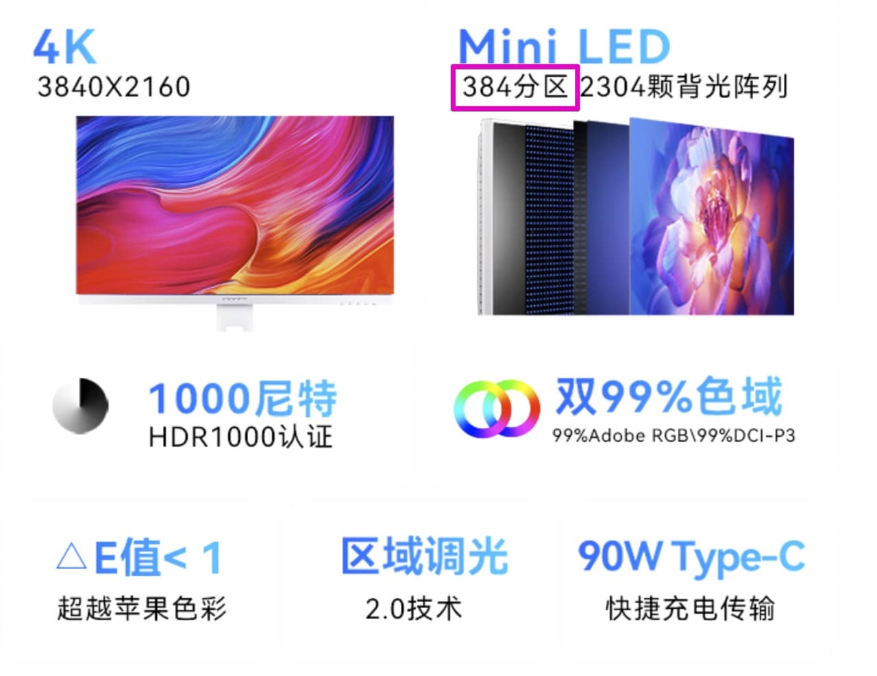 ▼一方でInnocn 27 M2Uは384ゾーンなので分割数は少なくなっています。↓