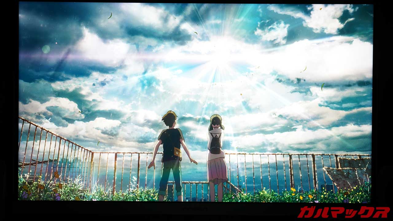 画面の輝度を100%にすると明るすぎるんで僕は50%くらいで使ってるんですけど、HDR映像の再生では画面全体がビカッ!って光るシーンだったり頭を貫く閃光のようなスポット光を体験できます。スゲェ。。。