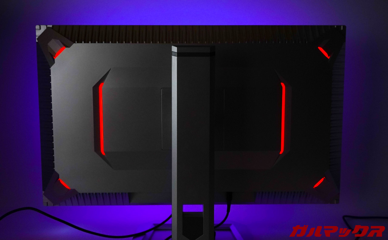 もちろんスタンドは上下の高さ、左右の回転、ピボット機能など充実。スタンドを取り外せばVESA100規格のネジ穴もあるんでモニターアームも使えますよ!