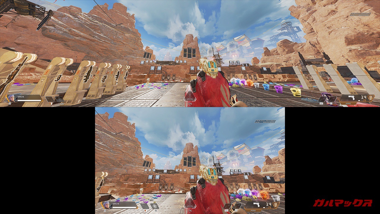 ▼APEX LEGENDSではこんな感じ。圧倒的に左右の情報量が増えてる。↓
