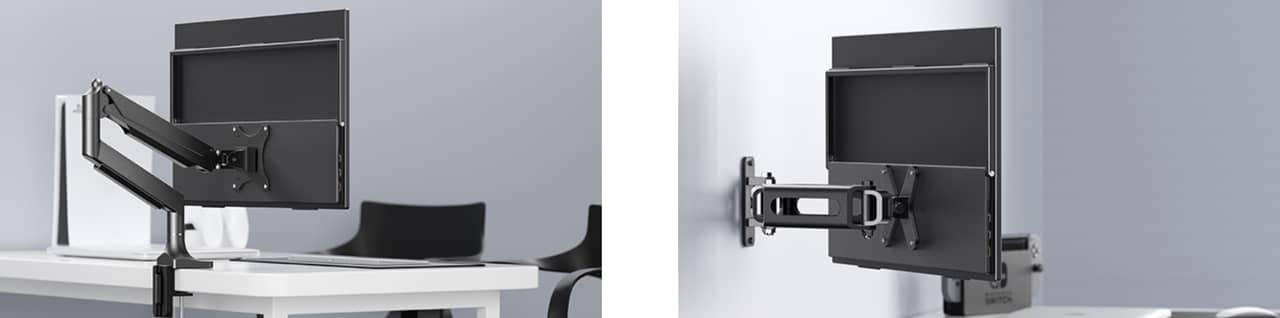 ▼背面には180°開くキックスタンドを備えるほか、VESA規格にも対応しているのでモニターアームの利用もOK。↓