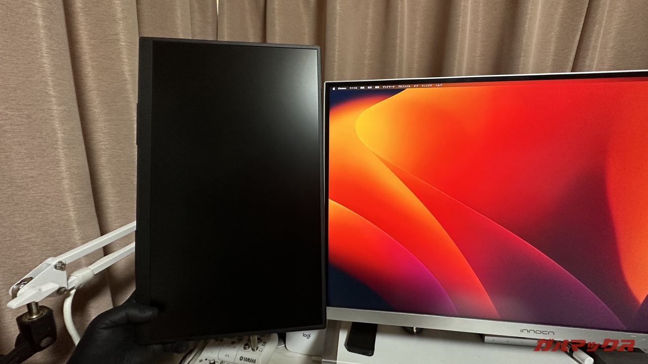18.5型ってなんとも中途半端な大きさだなーって思ってたんだけど、これ、27インチモニターの横に縦置きするディスプレイとしてはサイズ的に結構良い感じ。
