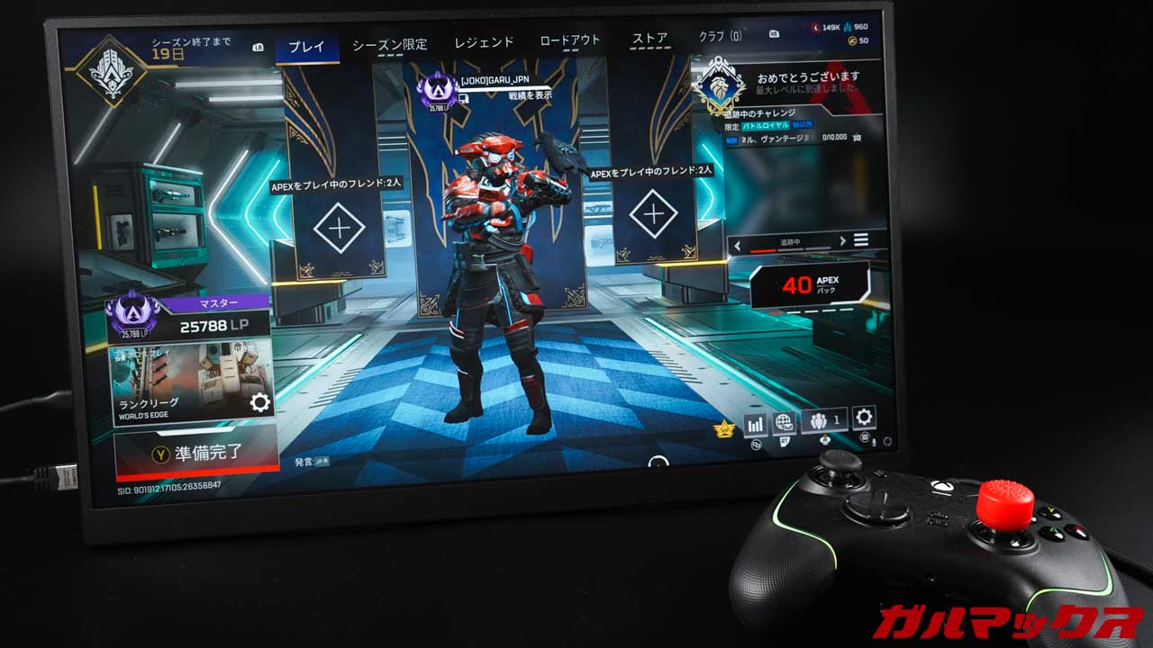 ゲーミングノートPCって大体13〜17インチでしょ?もう少しディスプレイサイズを大きくしたい、でも、据え置き型モニターを置く余裕が無い。って人にとってこの使い方は結構良いんじゃないかと!100Hzの高リフレッシュレートにも対応しているし。