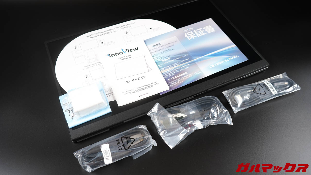 多くのモバイルモニターはスタンドにもなるケースが大体付属しているけれど、InnoView INVPM501はケースが付属してないのね。その代わりに本体にはキックスタンドが備わっているわけだ。