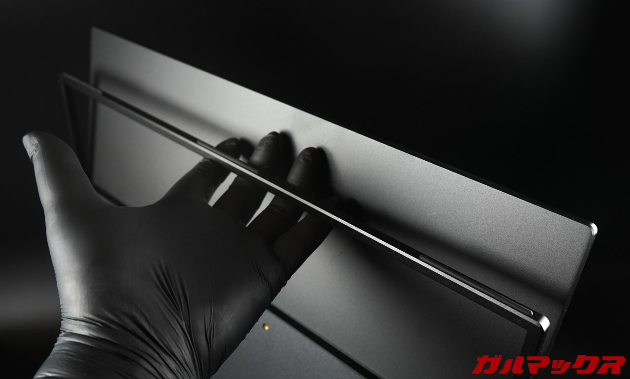 取り付けも簡単。キックスタンドを開いてノートPCのディスプレイにスポッとはめることで、簡単にディスプレイ巨大化ができちゃう。ただ、メーカー推奨ってわけじゃないのでやるなら自己責任で。