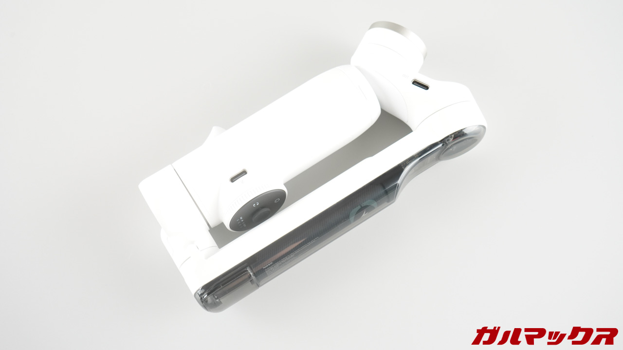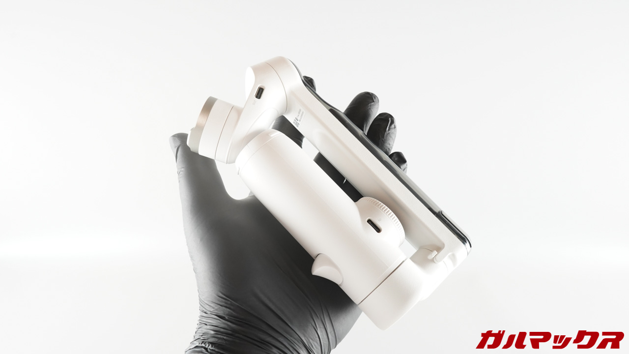 筆者が普段使っているジンバルは、折り畳んだ状態から通常状態へ展開後にスマホを取り付けるのだが、展開時に電源が入るのでスマホを取り付けてない状態で動き始めてしまう。