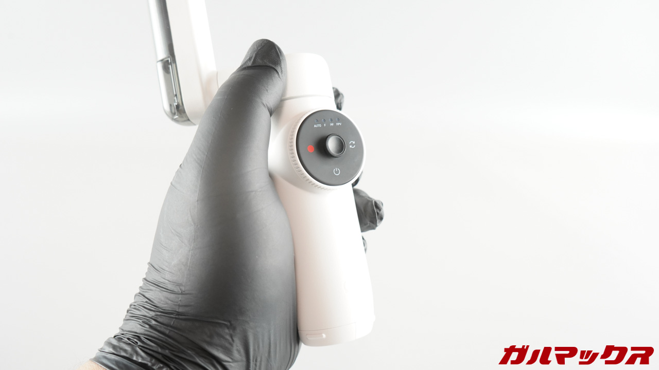 ▼角度調整は様々なジンバルで取り入れられているスティック型なので操作性に関して大きな違いはないが、ズームは親指の側面で簡単に操作できる。これは使いやすい。↓