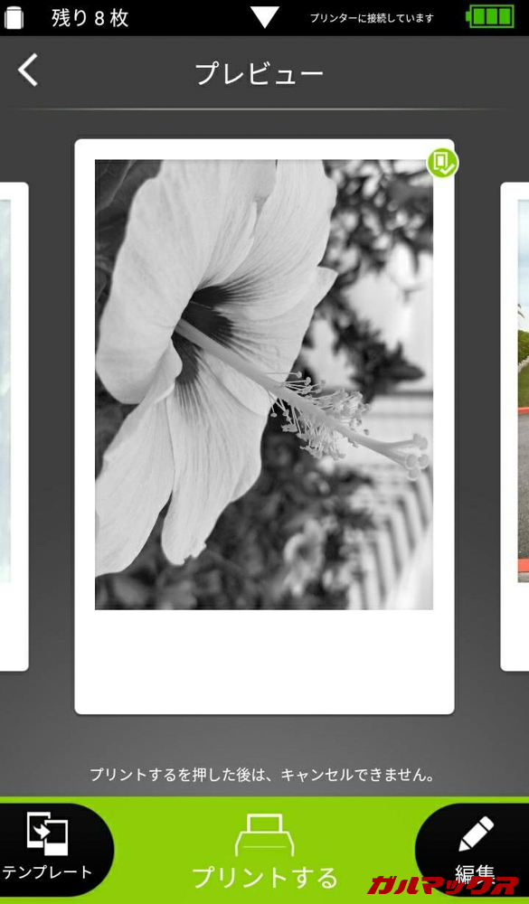 ▼先程はセピアでしたがモノクロプリントもワンタッチでできちゃいます↓
