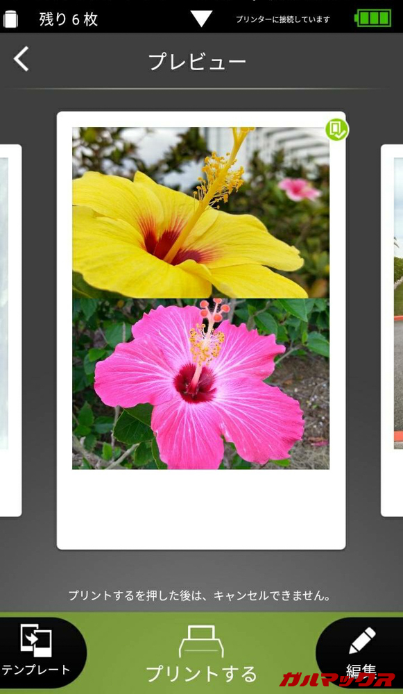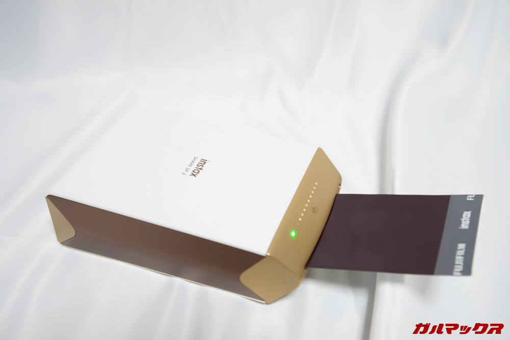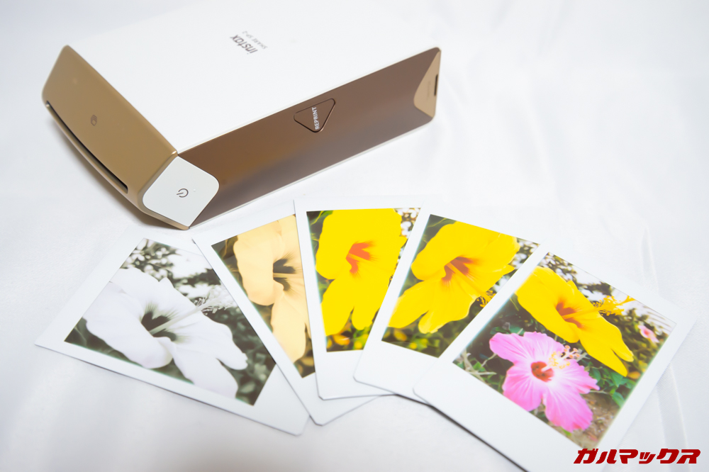 ▼印刷するとスマホから本体にデータが転送されて転送時間も合わせて数十秒も有ればすぐに出てきます。排出直後は真っ白に見えますがふったりせずに静かにテーブルなどにおいておくと1分~2分くらいで綺麗な写真になります。