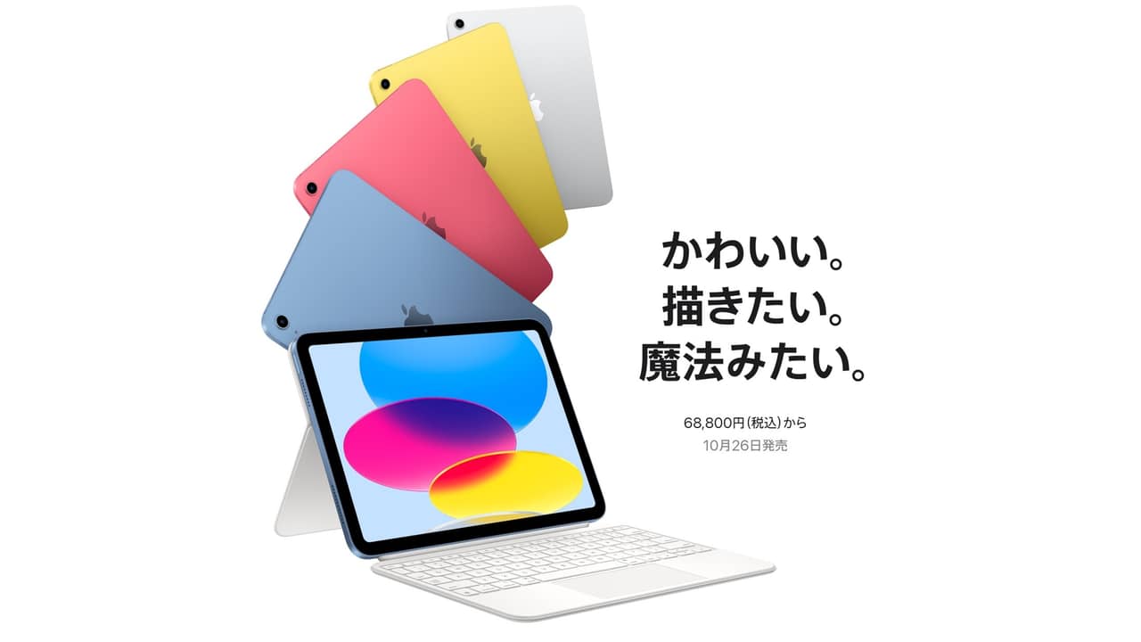 iPad(第10世代)の発売日は10月26日!Wi-Fiモデルとキャリア通信が使えるセルラーモデルが用意されており、価格は以下の通りです。