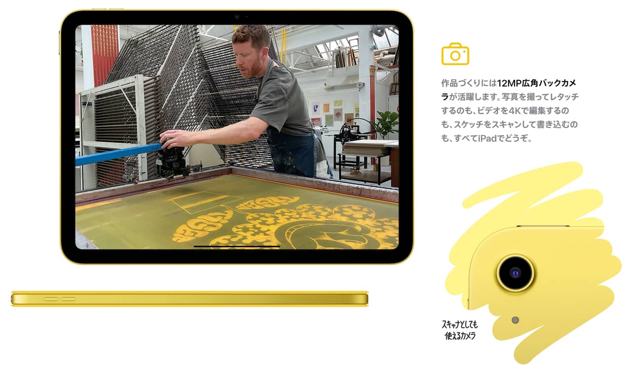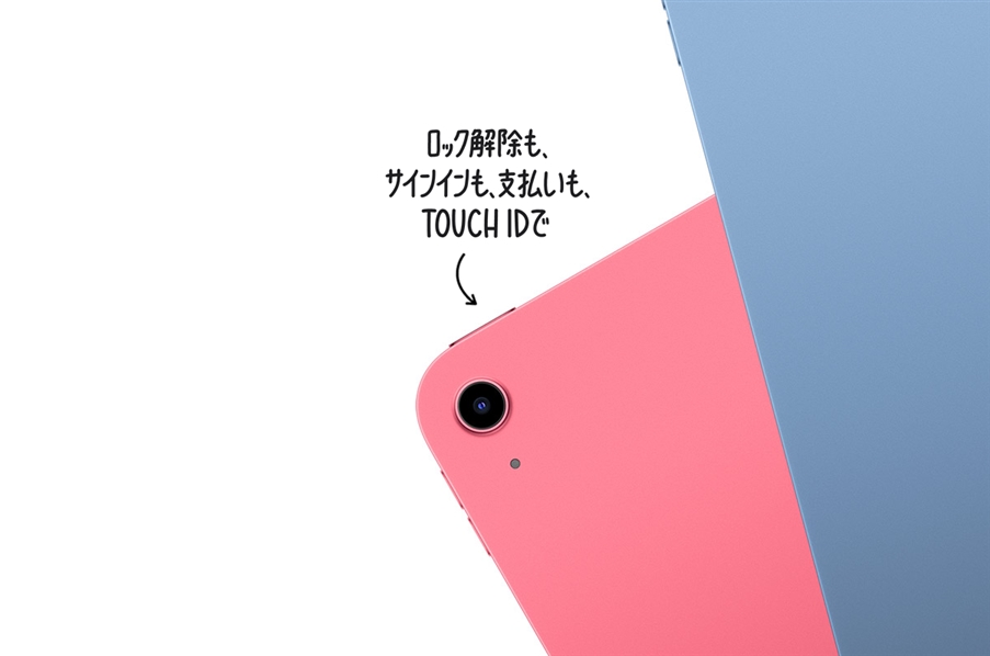▼iPad(第10世代)の外観デザインはこれまでのクラシカルなデザインから一新!iPad Air(第5世代)と同じスタイルの見た目になっていますよ!側面も背面もフラットで非常にスタイリッシュでカッコイイ!↓