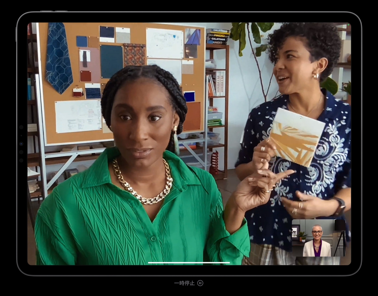 ▼インカメラは122°の超広角カメラ!広範囲の画角で撮影できる他、自動で被写体をフレーム内におさめて調節してくれるセンターフレームにも対応しており、テレワークでのビデオ通話にも活躍できそうっすね(`・ω・´)。↓