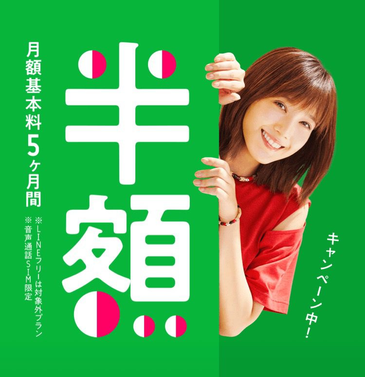 9/30まで実施中(追記:10月1日にLINEモバイルでキャンペーンが継続されていることを確認)の半額キャンペーンを適用させています。本田翼さんがCMやってるあれです。
