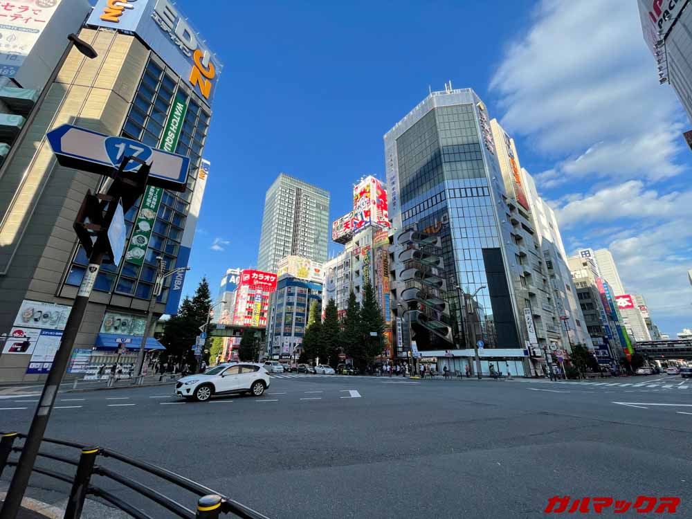 こちらも写真全体が青みがかるのではなく、ピンポイントで空の色合いが調整されている印象です。また、路面のディテールもよりしっかりと確認できるようになりました。