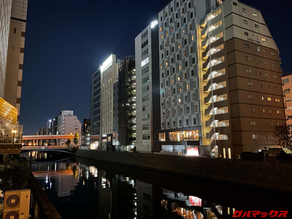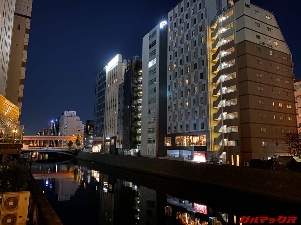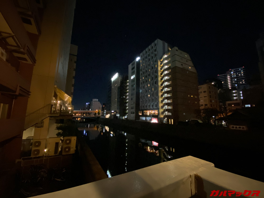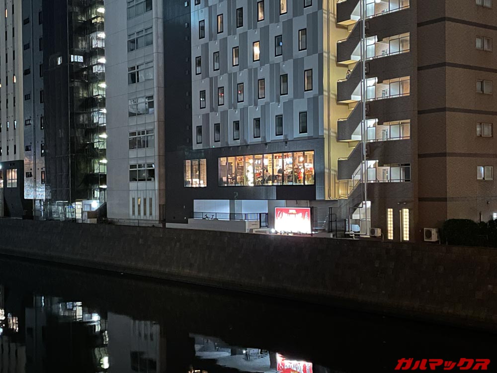 ナイトモードの検証は進化が分かりやすいようにiPhone 11(アウト側のメインカメラのみナイトモード対応)で撮影した写真と比較してみます。まずは光量の多い夜景シーン。iPhone 11よりも全体的に若干明るく撮影できるようです。