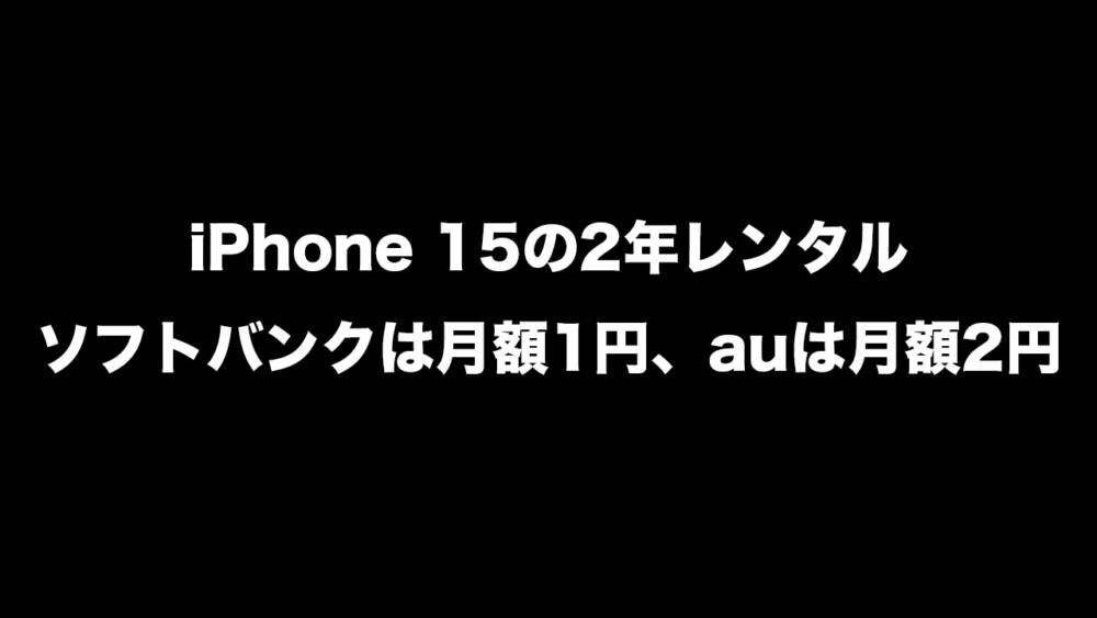 iPhone 15の128GBはソフトバンクで月1円、auで月2円で2年レンタル可能。MNP乗り換え時の特価