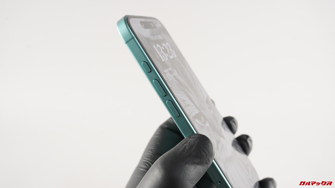 ▼右側面にはiPhone 16シリーズのウリとなるカメラコントロールボタンを搭載!Proモデルじゃなくても最新機能を使えます!↓