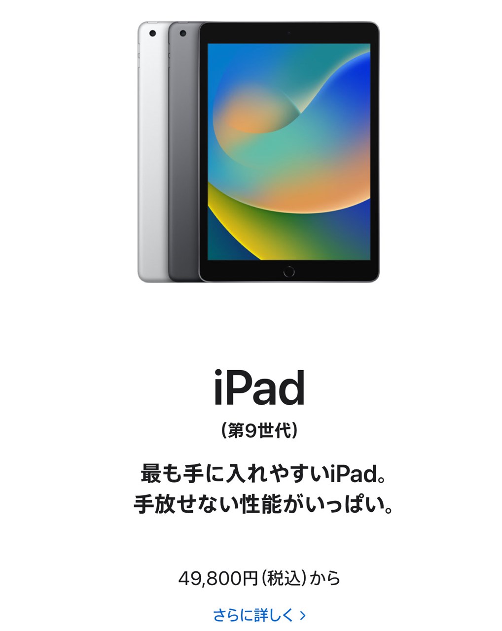 iPad(第9世代)は執筆時点で型落ちの旧モデルではありますが、未だにAppleの商品ラインナップに並んでいる息の長いエントリーモデル。