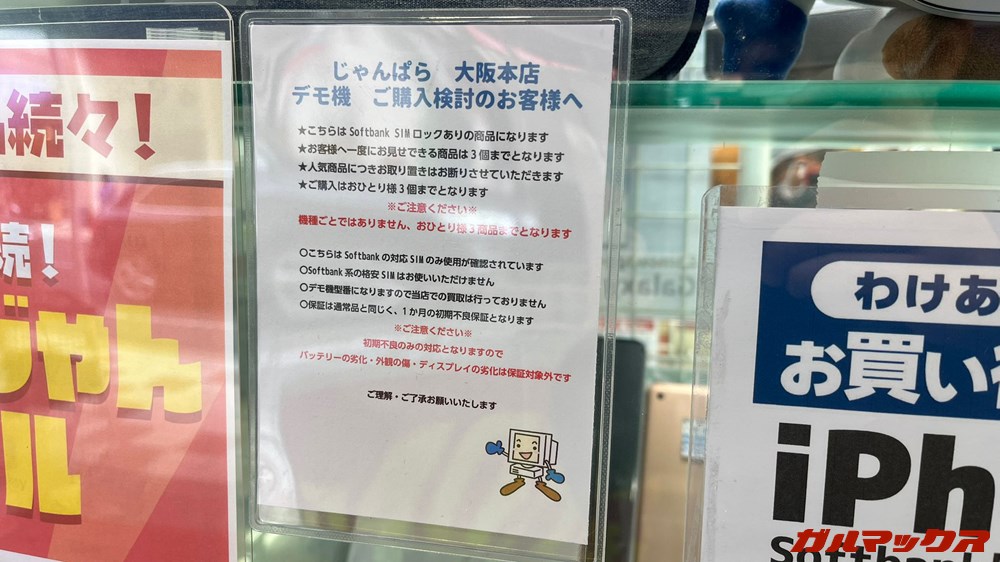 大阪のじゃんぱらにてSoftBankのデモ機上がり品iPhone、iPadが販売されていた?