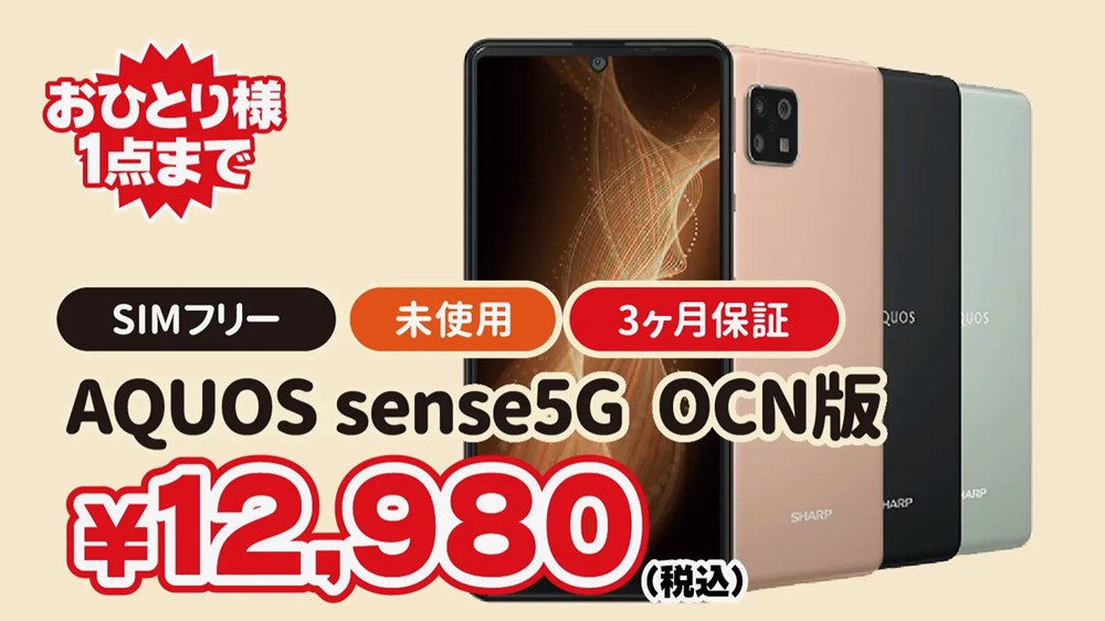 4週目のAndroidスマホ枠では、AQUOS Sense5Gがノミネート。