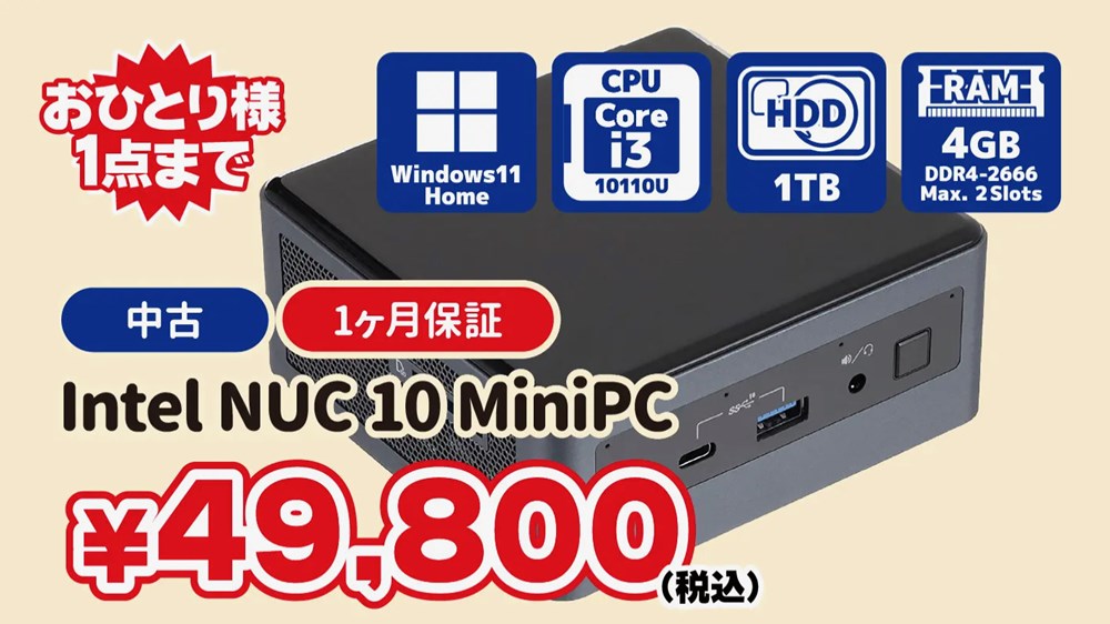 第2週ではノートPCがラインナップに入っていましたが、今回はIntel製のミニPCがセール対象に入っています。