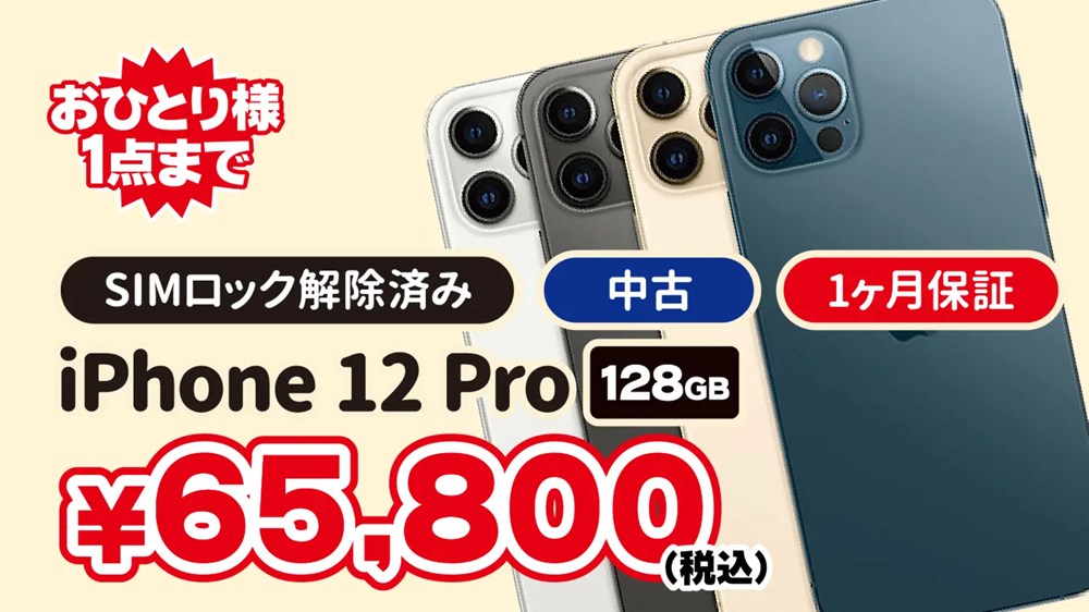 iPhone 12 Pro 128GB 中古(SIMロック解除済み):65,800円