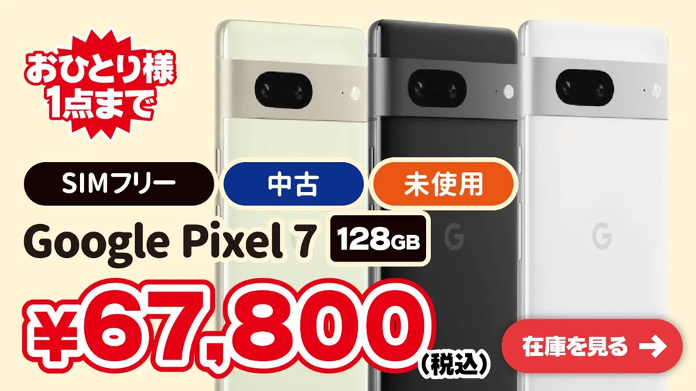 Pixel 7 未使用品・中古(SIMフリー):67,800円