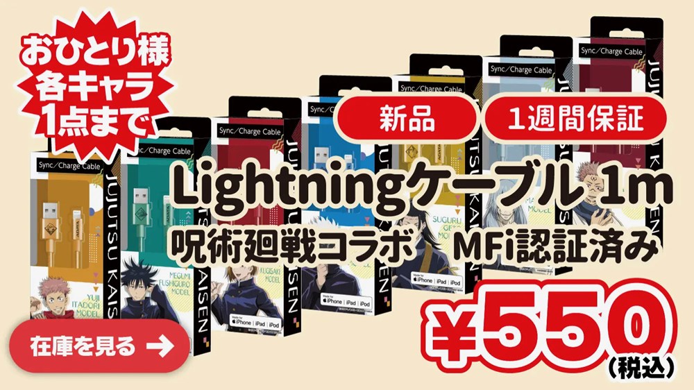 Lightningケーブル 1m 呪術廻戦コラボ 新品:550円