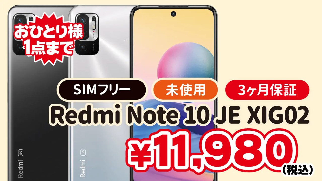 コスパの良いスマホを多数輩出することで知られるXiaomi。その中でも、日本専売モデルであるRedmi Note 10 JEが今回のセールに選ばれています。