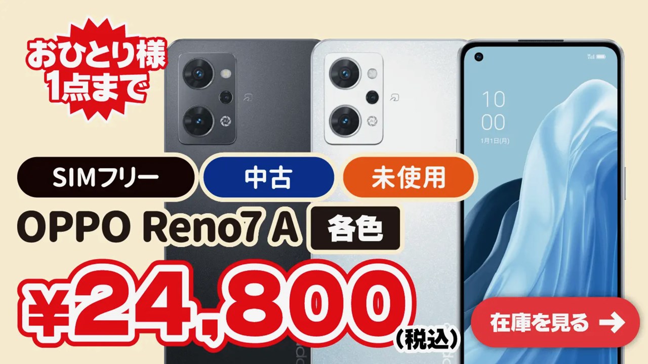 OPPOの日本国内向けミドルレンジモデルとして展開されているのがReno Aシリーズ。その最新モデルがセール対象に入っております。
