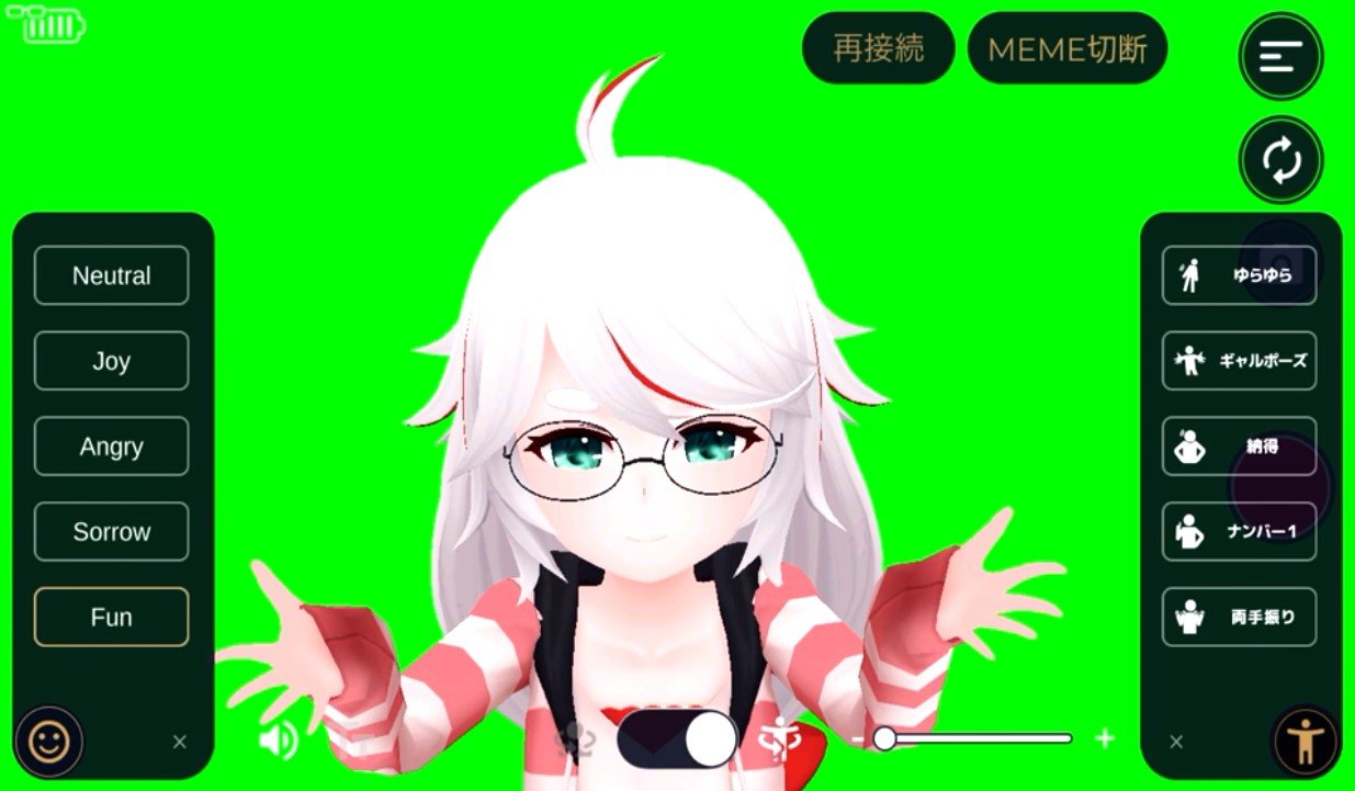 体のポーズや表情は仕組み上動かしにくいので、そこはアプリ上から行うようになっているとのことです。ですが頭や表情を動かせるのであれば、ゲーム実況や雑談配信、解説動画といったものであれば十分でしょう。ただし配信機能はないとのことです。