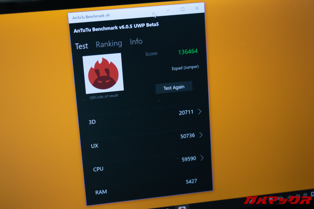 ▼続いてですが、体感速度が早くなるパーツのストレージ仕様も注目。格安PCは速度の遅いHDDを搭載しており、これが”サクサク動かない”大きな原因の一つとなっています。Jumper EZbook X1はHDDよりも速度が早いeMMCを64GB、そして現在最高速度のSSDを64GBの計128GBを利用可能です。速度を測定するベンチマークスコアは以下の通り。
