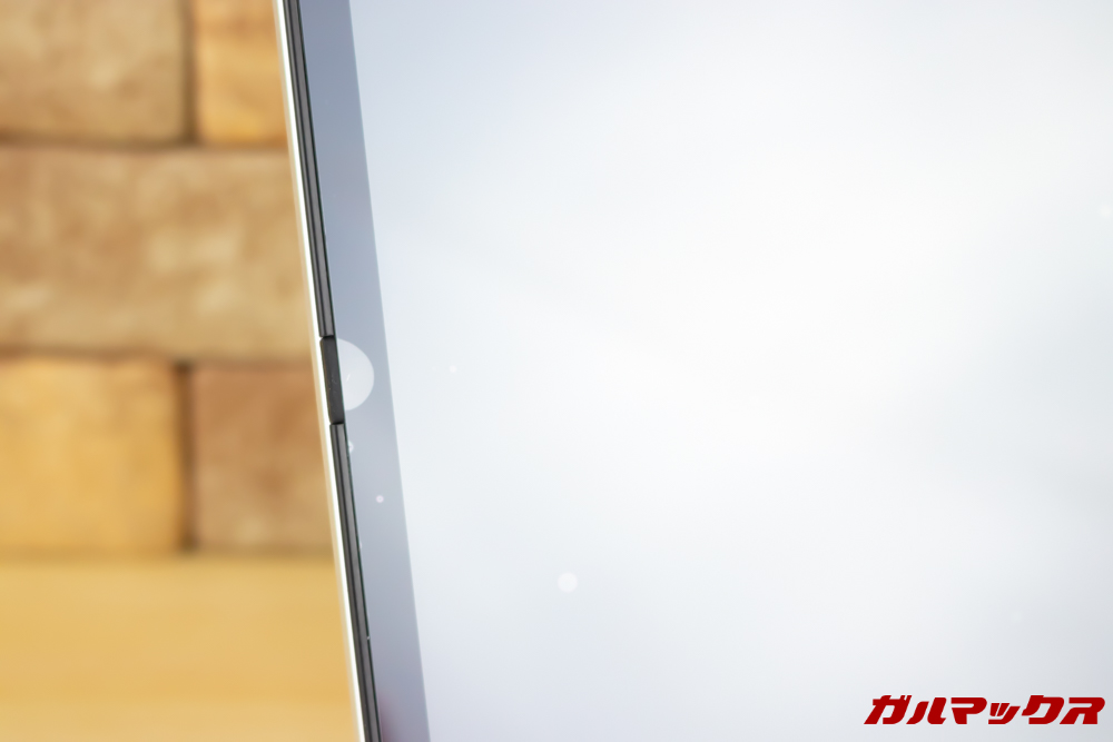 しかしながらやや組み立てが甘い部分も。僕の個体だけかもしれませんがディスプレイ下部に隙間が有りました。質感は良いので組み立て品質をもう少し頑張ってほしかったところです。ついでにですが、インカメラはディスプレイ右下に備わっております。↓
