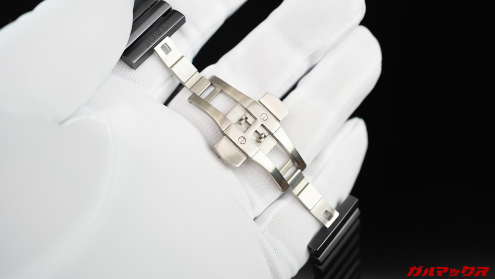 ▼アルミニウムアロイを素材とするJUUK Apple Watch アルミニウムアロイ ブレスレットはApple Watchと同様の素材。特にCosmic Greyカラーはスティールでは近づくことができないApple Watchと同様の色合いを表現でき一体感を高められるのもアルミニウムアロイの利点でもあります。バックルはスティール最高級ランクの316Lサージカルステンレススティール製を採用。堪らんねこの質感。↓