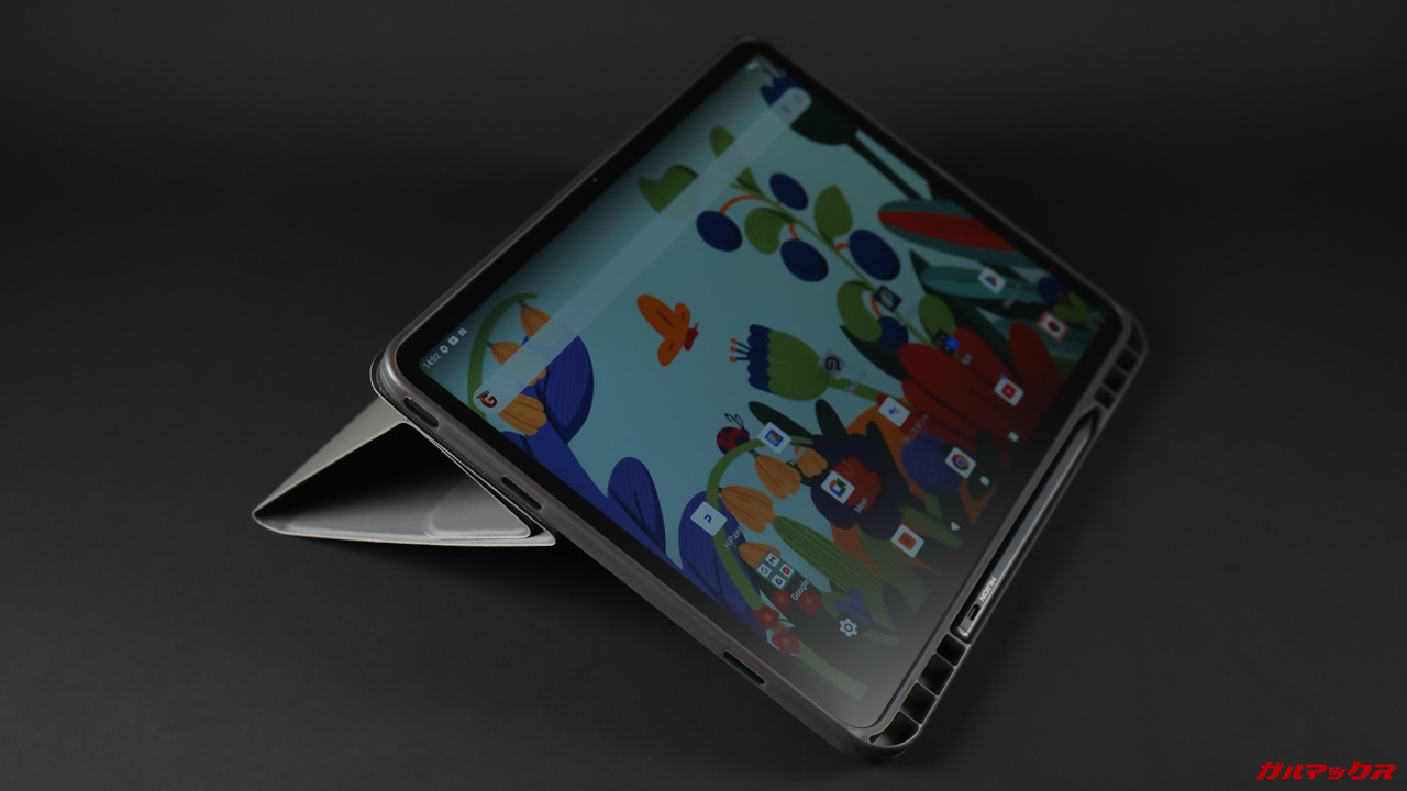 ▼付属のケースはディスプレイや筐体を保護するだけでなく、お絵描きしやすい角度で保持できるように工夫されてます。↓