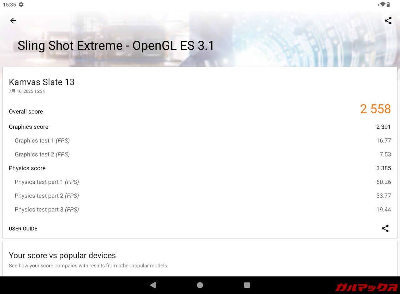 ▼さっそく端末の性能を数値化するAnTuTuベンチマークで性能を測定してみました。結果はガルマックスの基準だとエントリー水準となります。↓