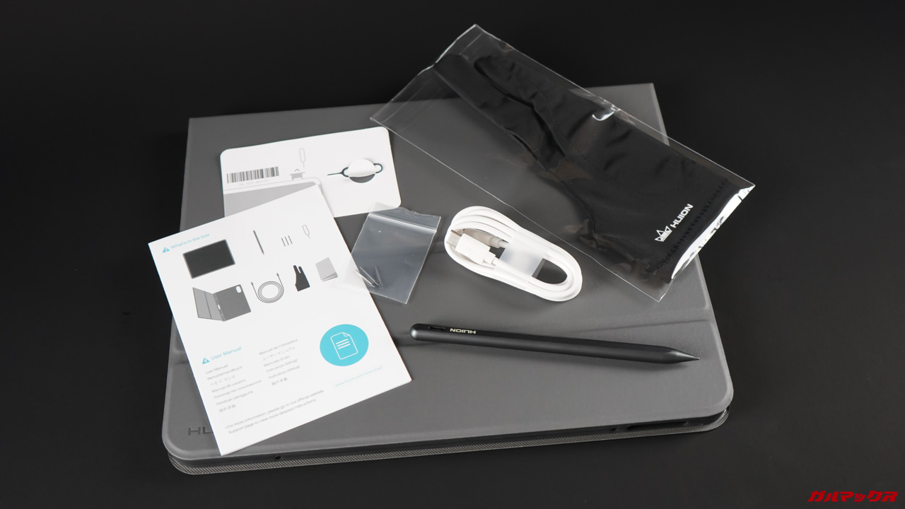 ▼Kamvas Slate 13の付属品はこんな感じでスタイラスペンやらケースやら全部入っています。↓