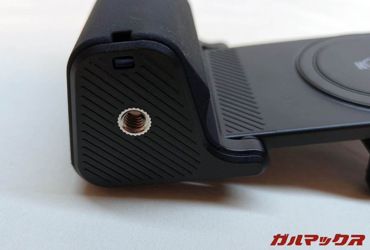 ▼下部には1/4インチ三脚穴があるので三脚も取り付け可能。↓