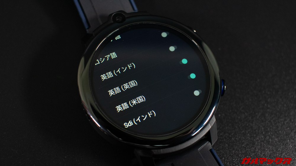 ▼KOSPET POWERのデフォルトのキーボードは丸い画面に最適化されているのはいいんですが、このキーボード…日本語が打てないんですよね。設定を見ても日本語が入っていません(´・ω・`)。↓