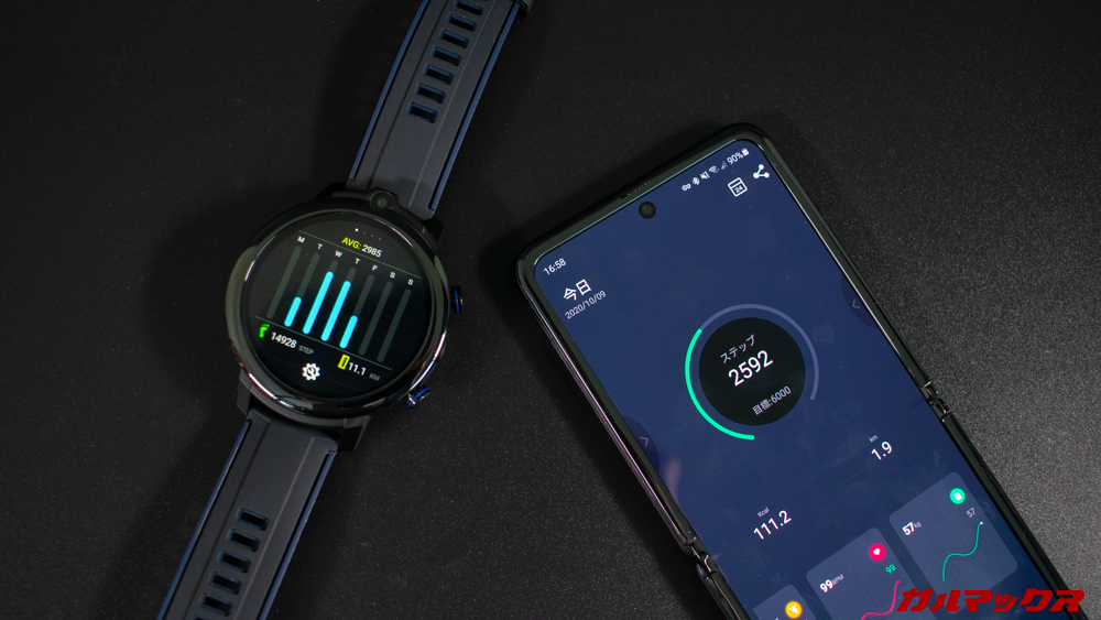 このKOSPET POWERはスマホアプリのWiiwatch 2をダウンロードし、Bluetooth経由で接続することで、各種フィットネスデータの記録確認はもちろん、様々な機能が使えるのがウリ。