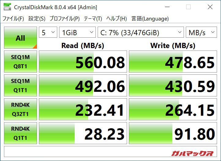 ▼ストレージ速度も微妙。普段使いでは困ること無いけど、値段が値段だけにもう少し頑張って欲しかったポイントかな。だって10万円もするんだぜ。もうちょっと頑張ってよね。↓