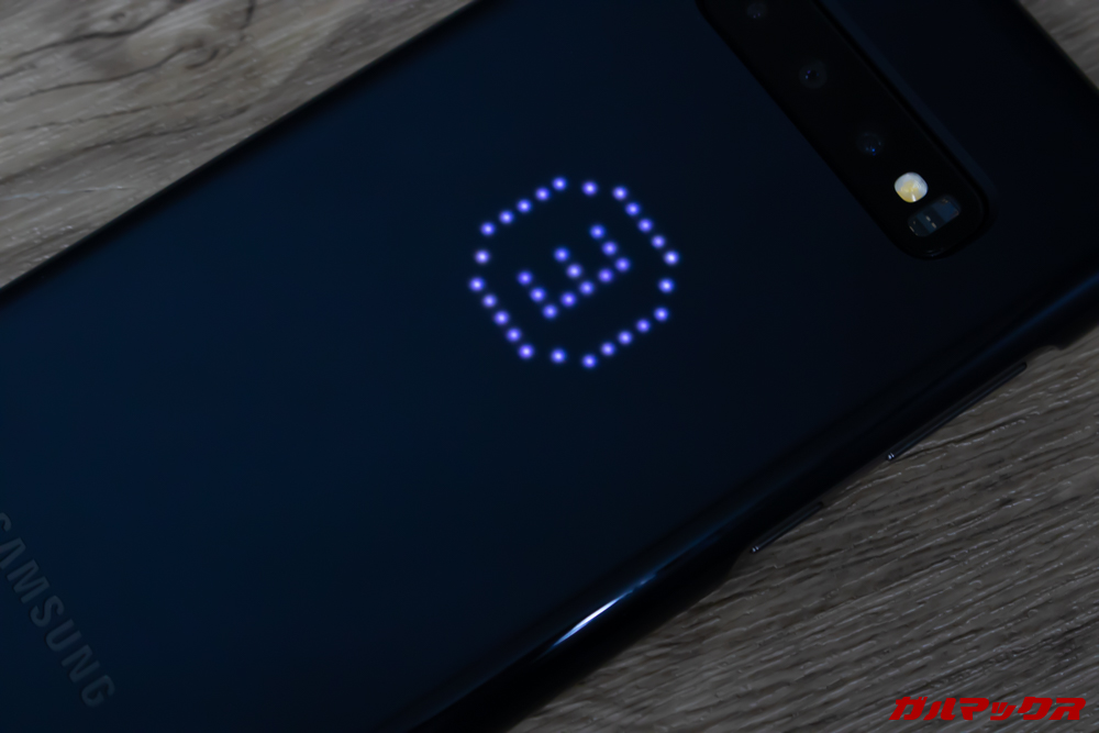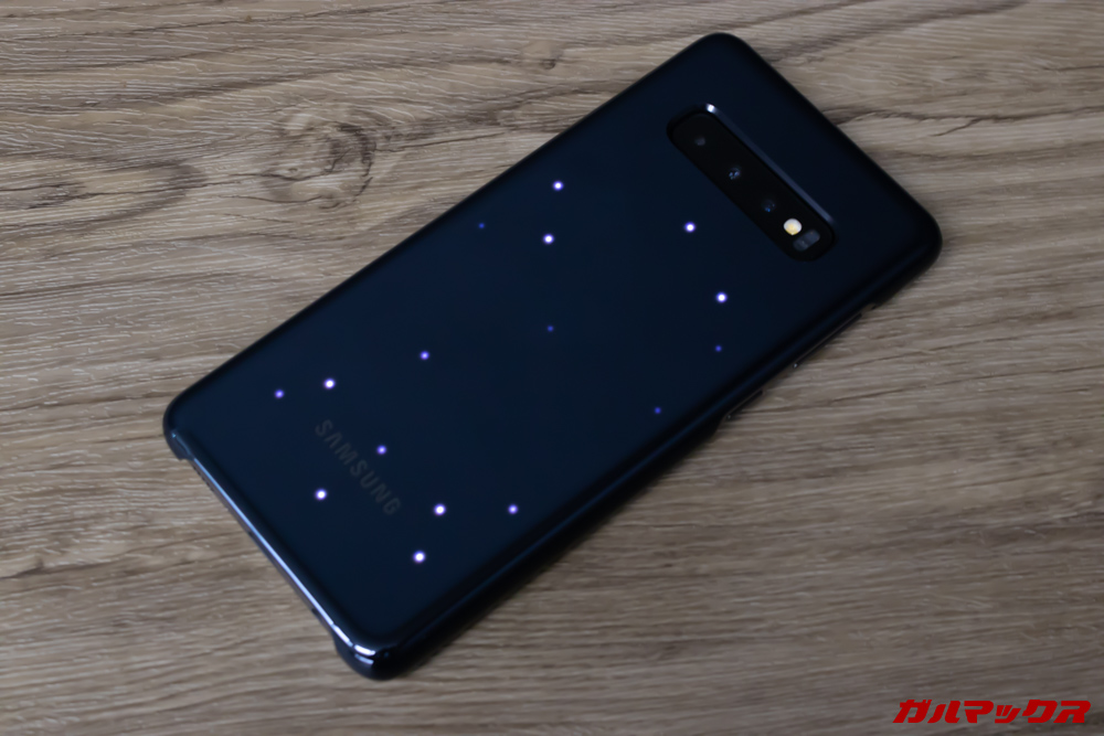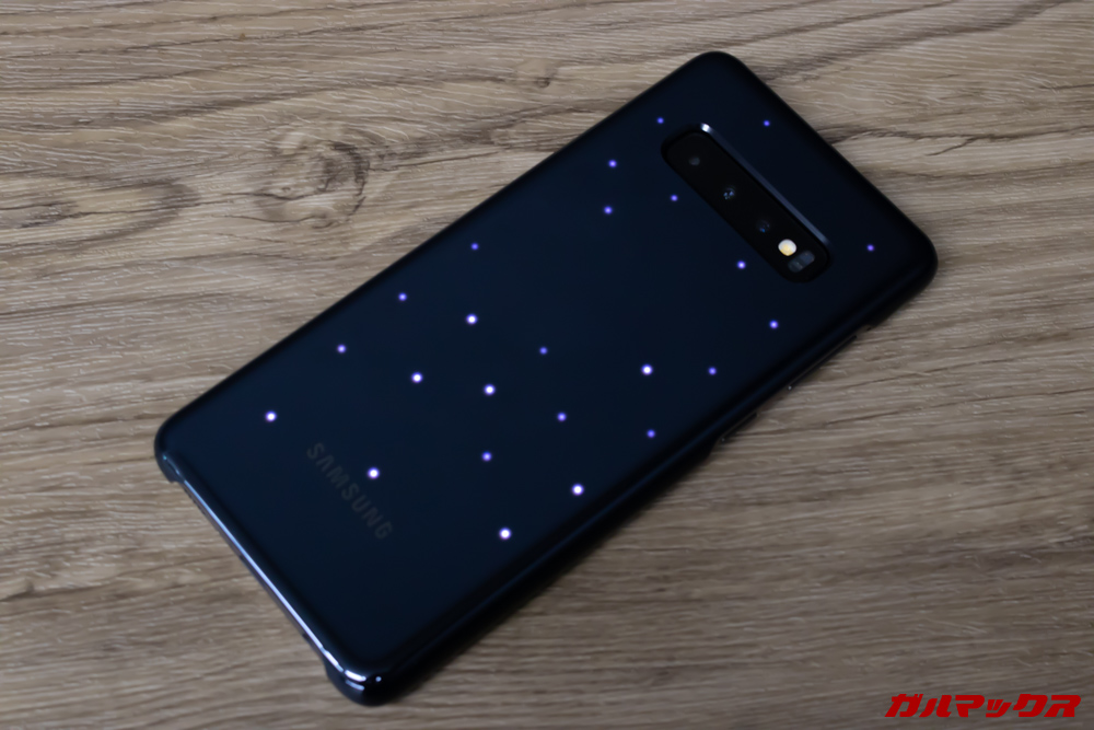 ▼Galaxy S10+に装着すると・・・こんな感じに埋め込まれたLEDが美しく煌めくのです!!!↓