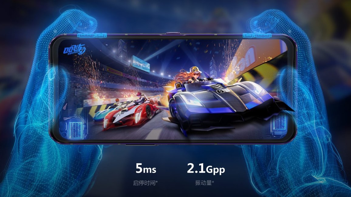 ▼そして、画面側にはタップだけでなく押し込むことで操作できる感圧型のボタンも搭載しています!ゲーミングスマホ史上最大の計8つのゲーム用ボタンをのっけるという、ものすごいガチっぷりはすごく操作性が気になる!↓