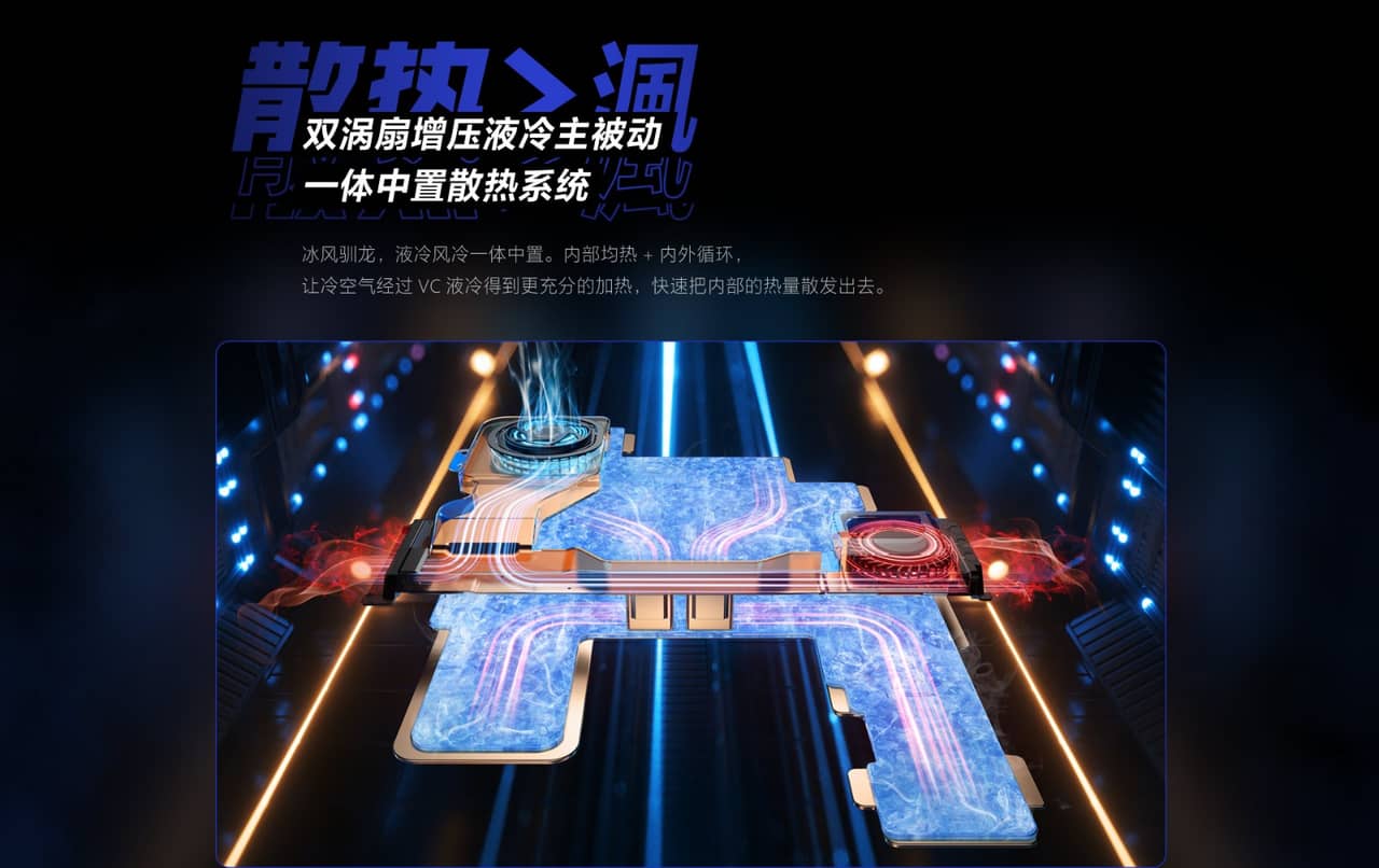 ▼ゲーミングスマホには欠かせない冷却機構。Legion Phone Duel 2は当然のごとく搭載。しかも液体冷却パネルの面積をかなり広げ、さらに冷却ファンを2つ搭載するというガチっぷり!↓
