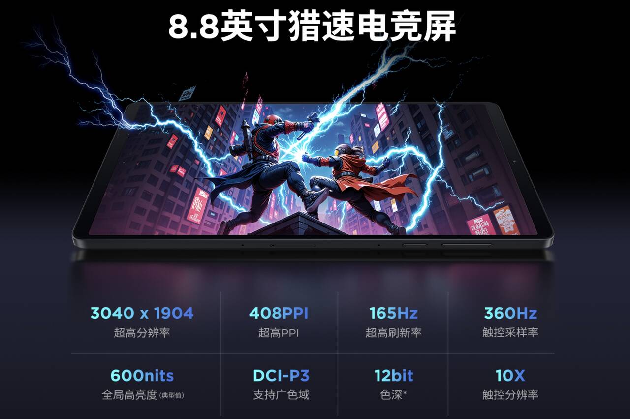 ディスプレイ 8.8インチ、3,040×1,904、最大165Hz