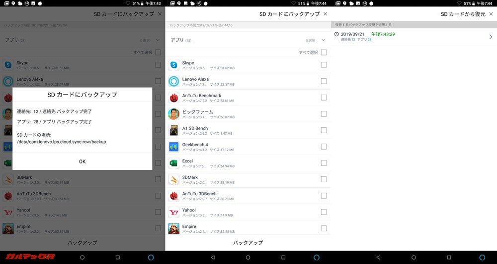 ▼連絡先やインストールされているアプリがバックアップでき、MicroSDなどに退避できます。↓