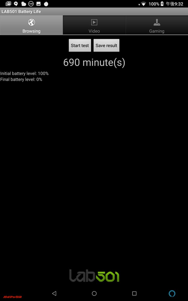 バッテリー持ちの検証では通常操作に近い「WEBページ表示・スクロール・リロード」を自動的に行なってくれるLAB501アプリを利用して輝度50%で測定。